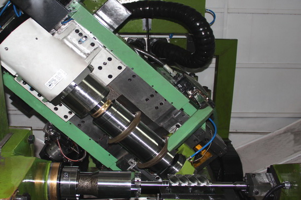 機床砂輪架上安裝有兩個CBN砂輪部件,分別完成轉(zhuǎn)子槽的粗/精磨削,砂輪架可沿軸向移動,使CBN砂輪移動至對應的磨削工位。通過對工件的粗磨及精磨,是一種大幅提高螺桿/螺旋轉(zhuǎn)子工件齒型型線各項精度指標的先進工藝方式。